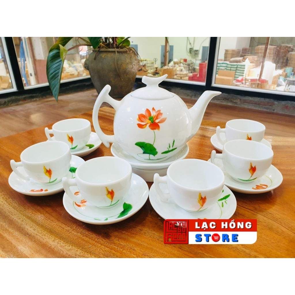 [Ấm chén in logo] Bộ ấm trà in hoa sen dáng bưởi cành LHCEVN-9222