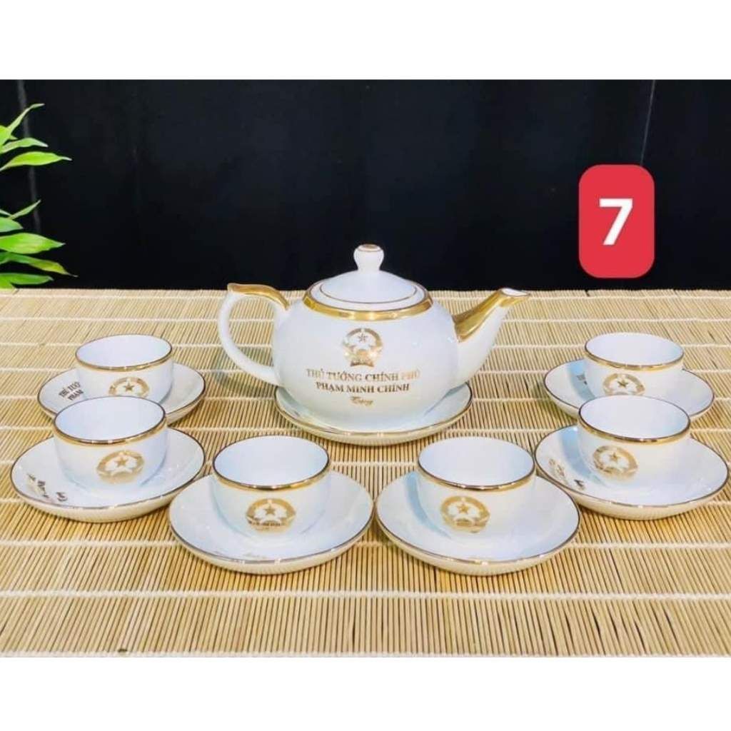 [Ấm chén in Logo] Bộ Ấm Trà In tên Thủ Tướng Phạm Minh Chính dáng đèn thần LHCEVN-9229