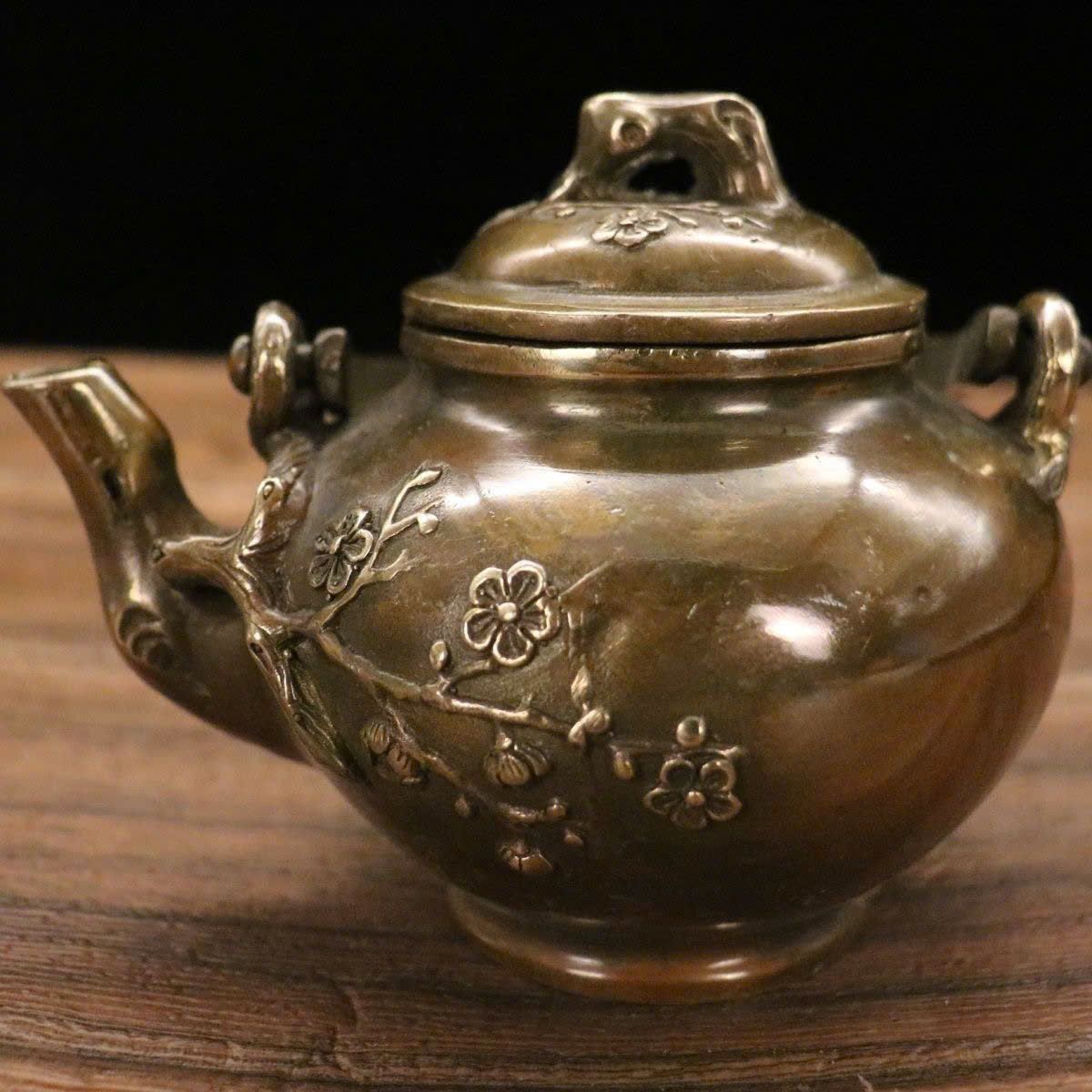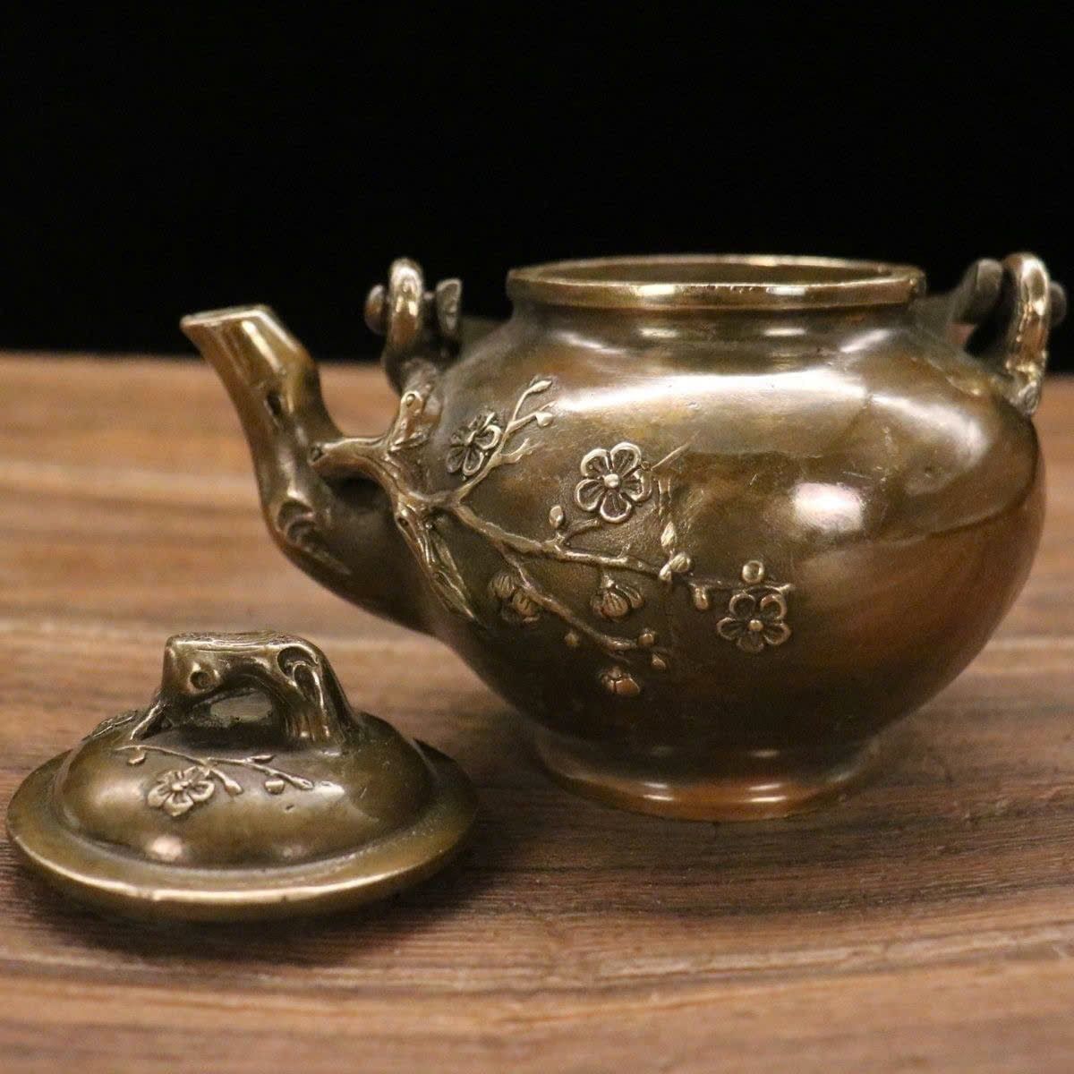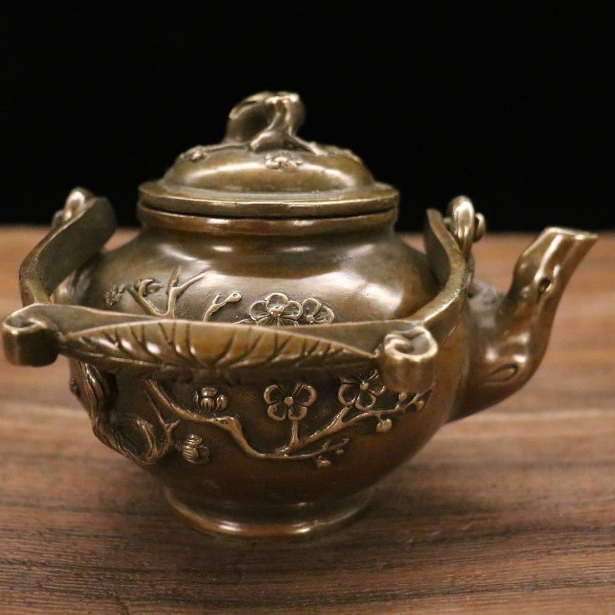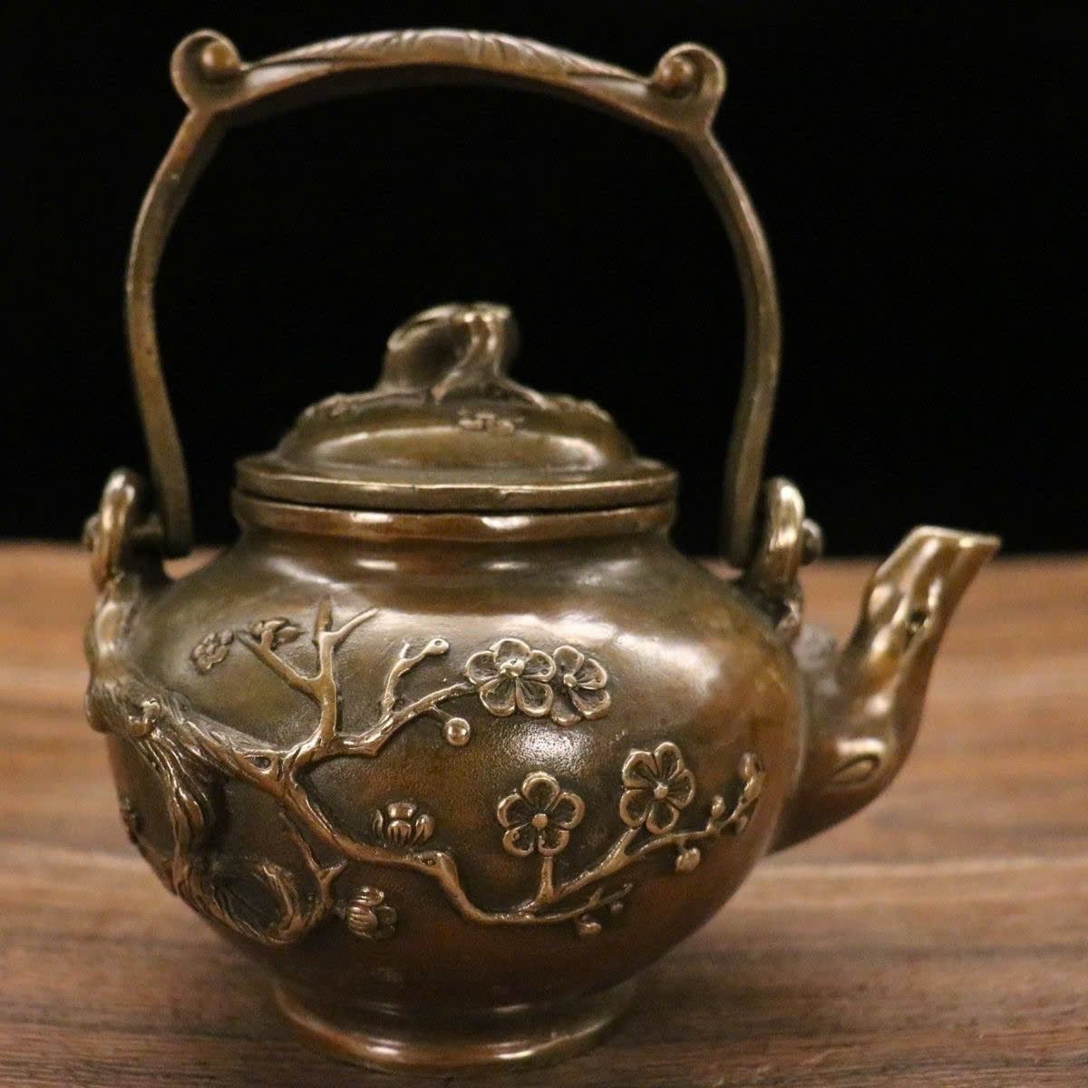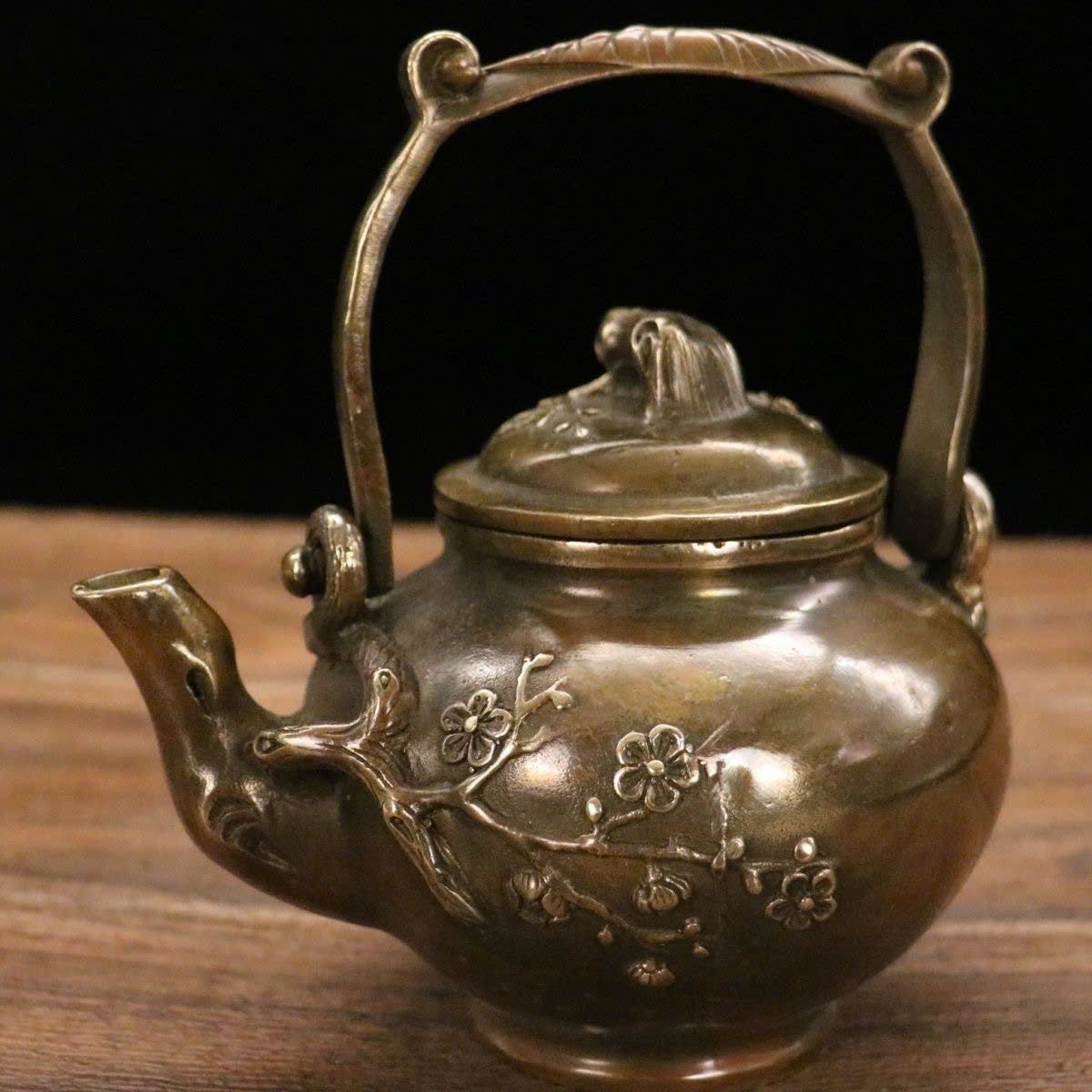 Ấm đồng hoa đào đón xuân đồng cũ sưu tầm LHMEVN-9130