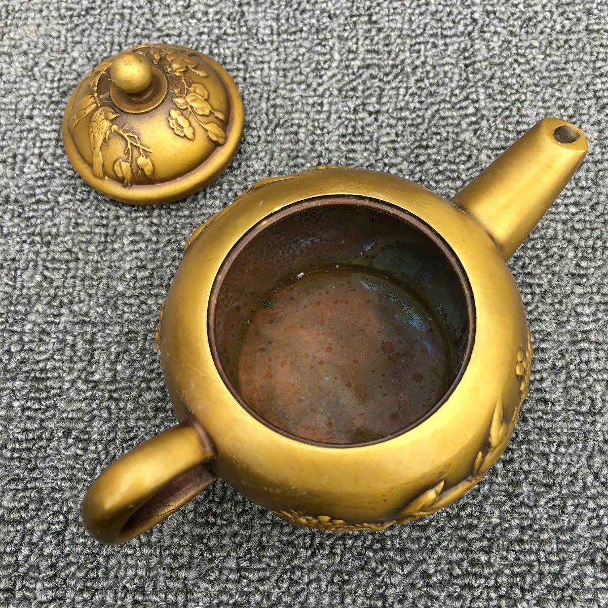 Ấm trà Hoa Điểu đồng cũ sưu tầm LHMEVN-9128