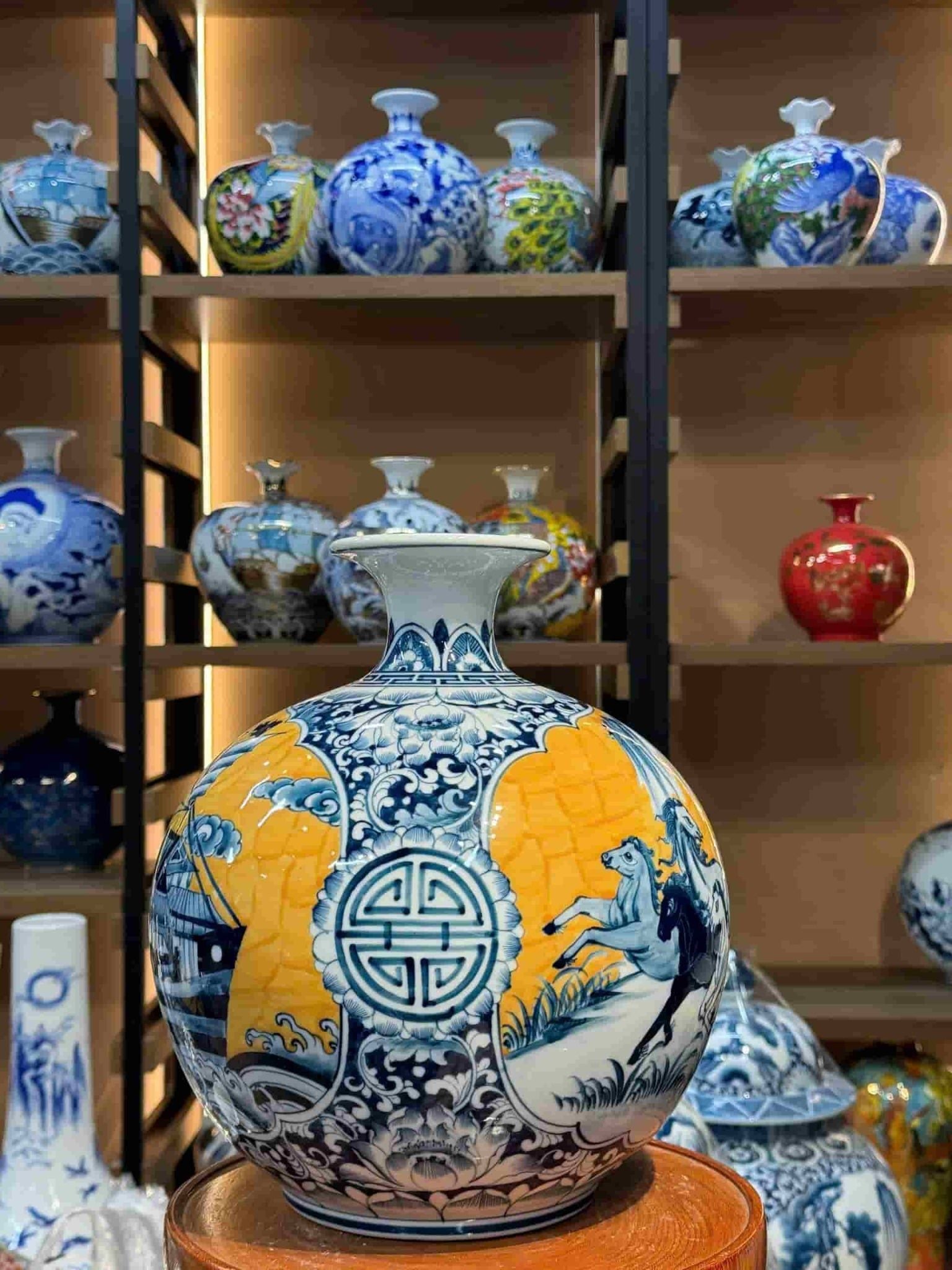 Vật phẩm trang trí đẳng cấp: Với vẻ đẹp tinh xảo, màu sắc trang nhã và họa tiết sống động, bình hút lộc là điểm nhấn sang trọng cho không gian nội thất. Nó thể hiện gu thẩm mỹ tinh tế, sự am hiểu về văn hóa và phong thủy của gia chủ.
