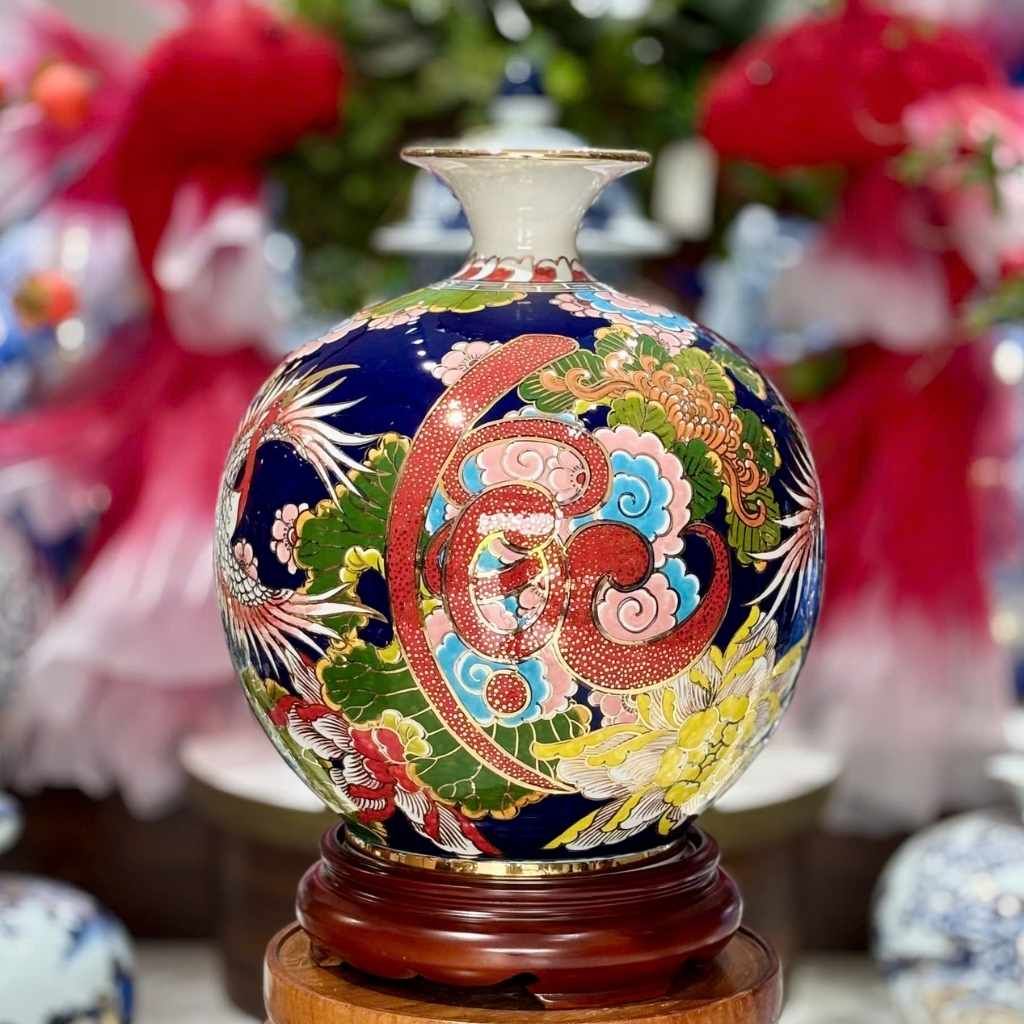 Bình Hút Lộc Nhị Cảnh Vẽ Vàng Gốm Bát Tràng LHCEVN-9215