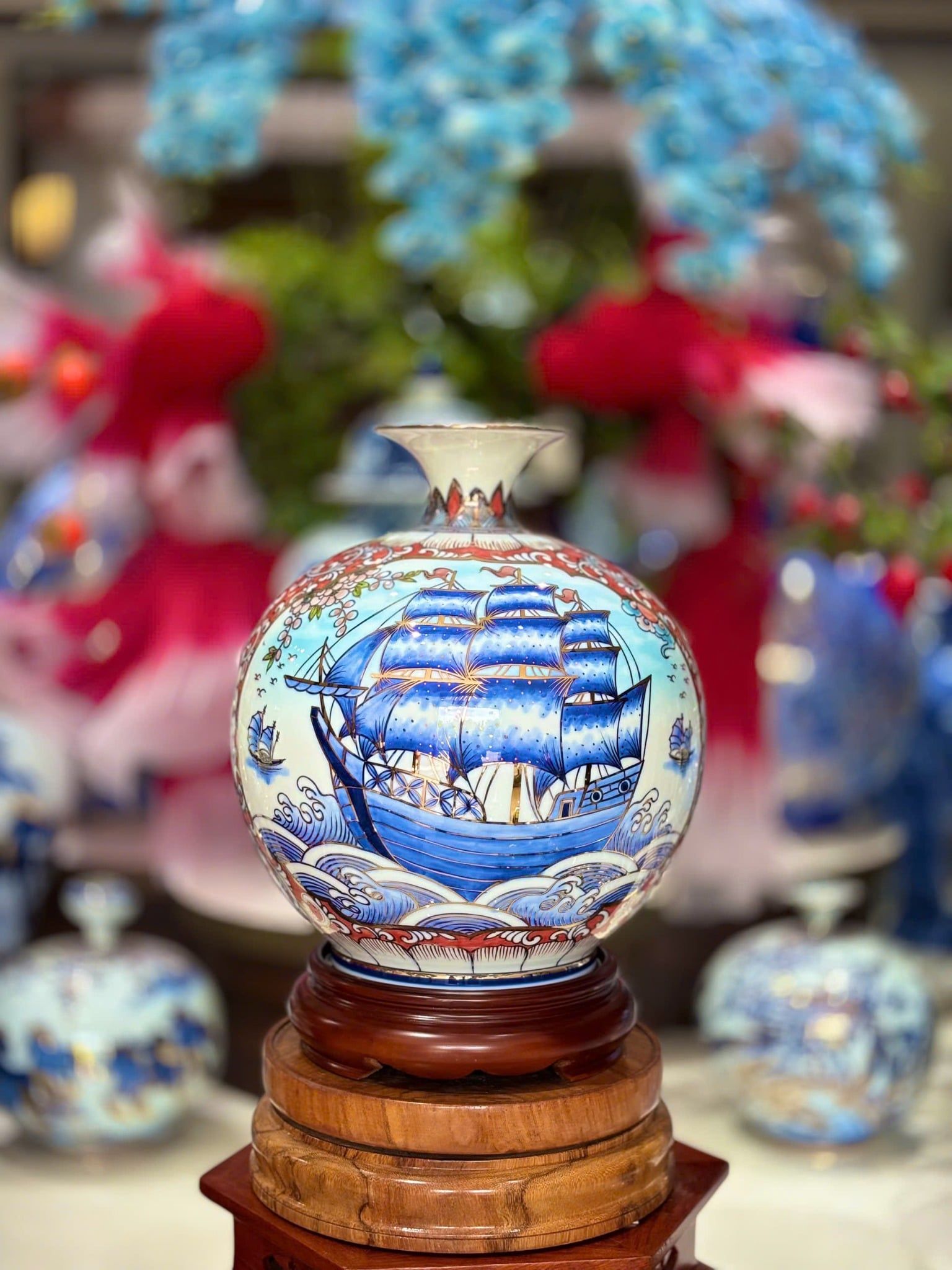 Điểm nhấn thẩm mỹ sang trọng: Vẻ đẹp thủ công tinh tế, cùng lớp men sáng bóng và họa tiết trang nhã giúp bình trở thành một điểm nhấn nghệ thuật sang trọng cho không gian phòng khách, bàn làm việc, quầy lễ tân hoặc sảnh tiếp khách, thể hiện đẳng cấp của gia chủ.
