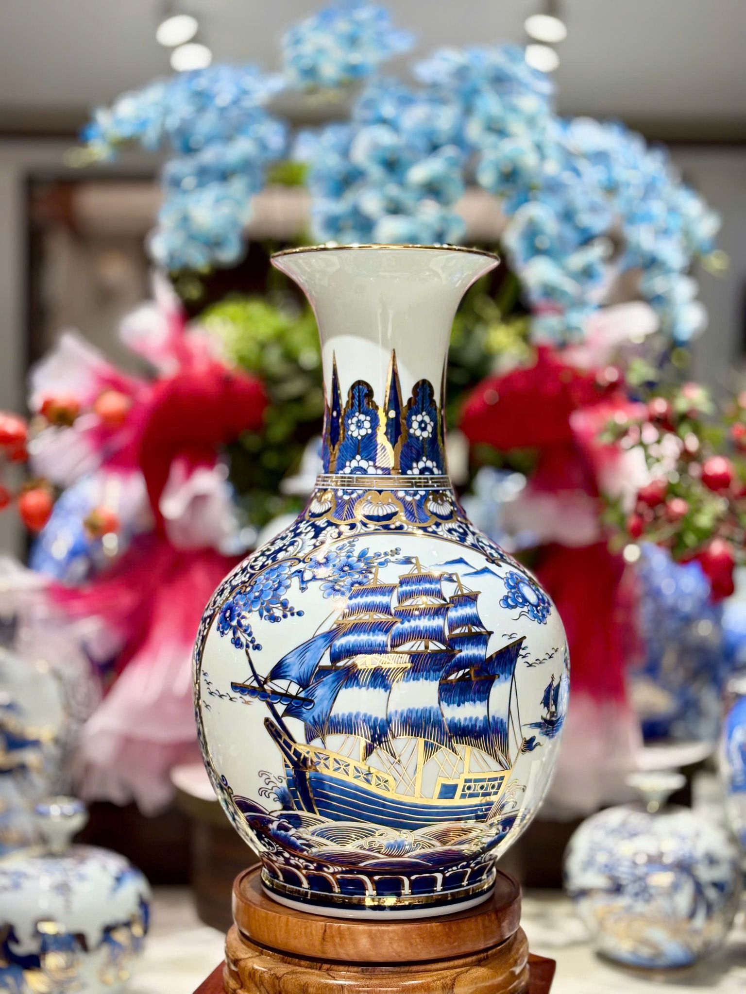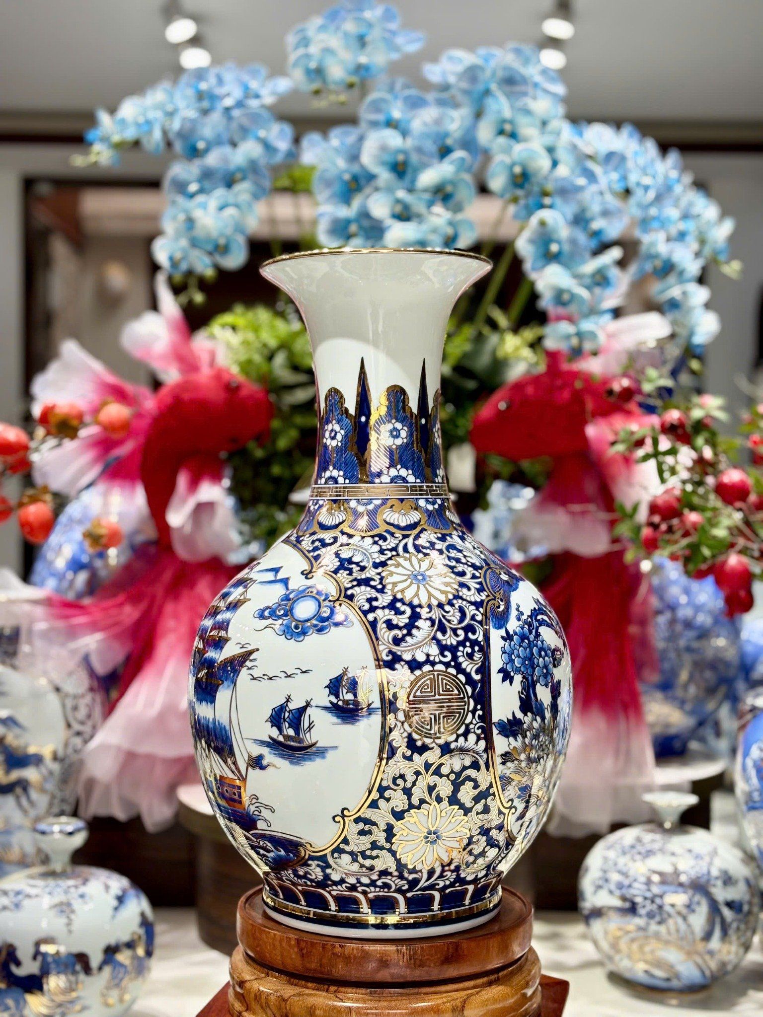 Bình hút lộc vẽ vàng cao cấp Bát Tràng LHCECN-9207