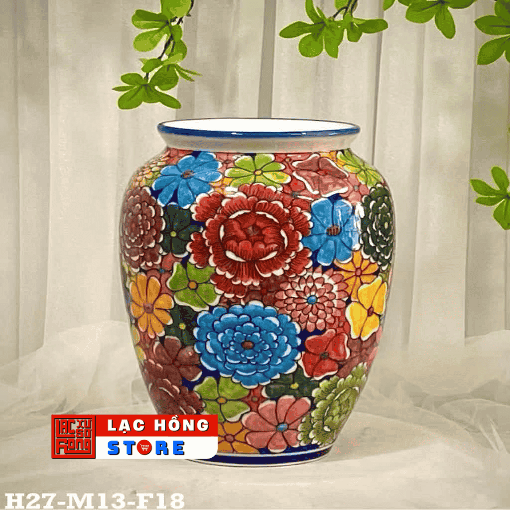 Bạn đang tìm kiếm một điểm nhấn tinh tế cho không gian sống? Bình gốm vẽ hoa trang trí là lựa chọn hoàn hảo, mang vẻ đẹp rực rỡ, sống động từ những bông hoa sắc màu được vẽ kỹ kín bình, tạo nên một tác phẩm nghệ thuật đầy cuốn hút. Mỗi chiếc bình không chỉ là vật trang trí mà còn là thông điệp về sự tươi mới, năng lượng tích cực cho ngôi nhà bạn.