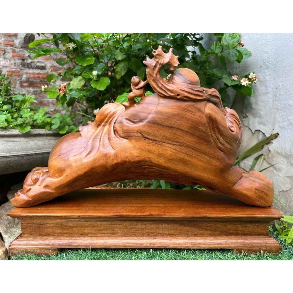 Cụ di lặc kéo bao tiền gỗ bách xanh LHWOVN-9162