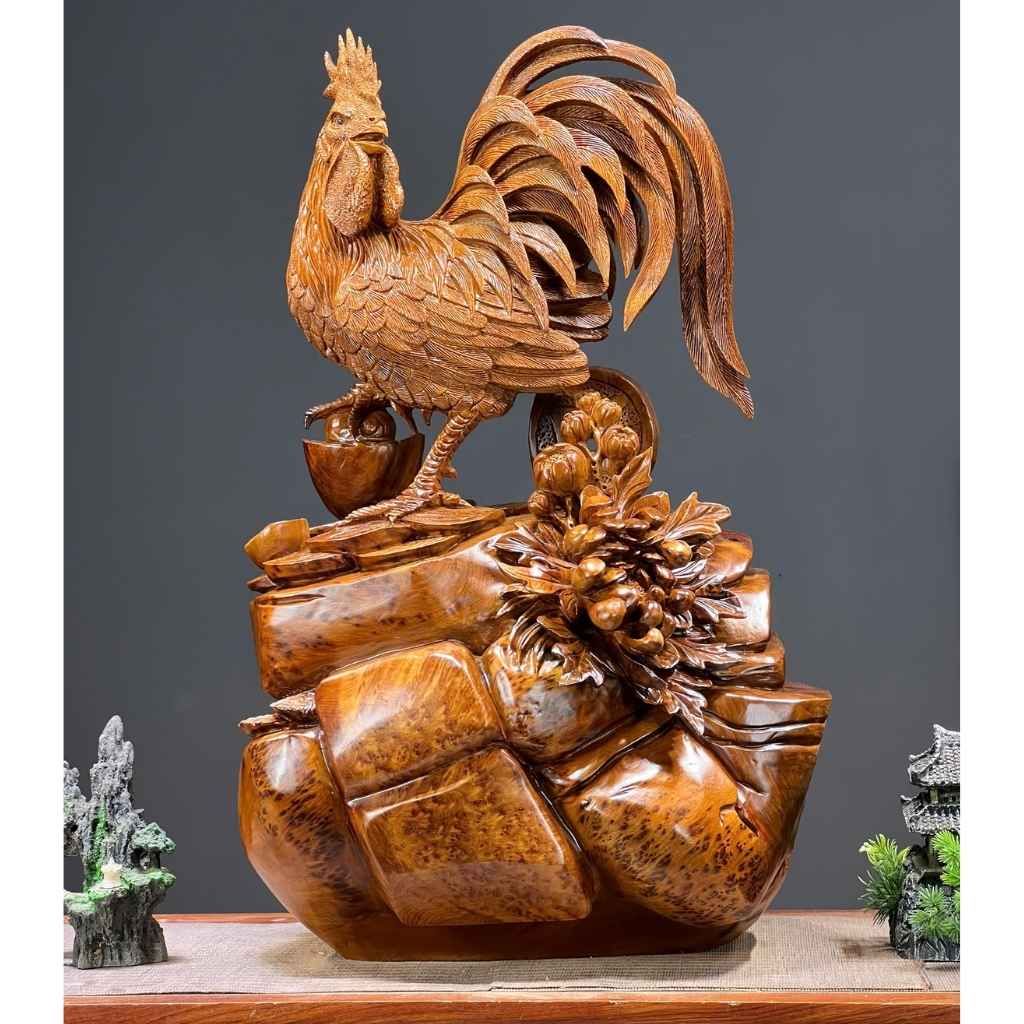 Gà Nhất kê kim tiền tài lộc Gỗ Nu Ngọc Am đỏ LHWOVN-9143