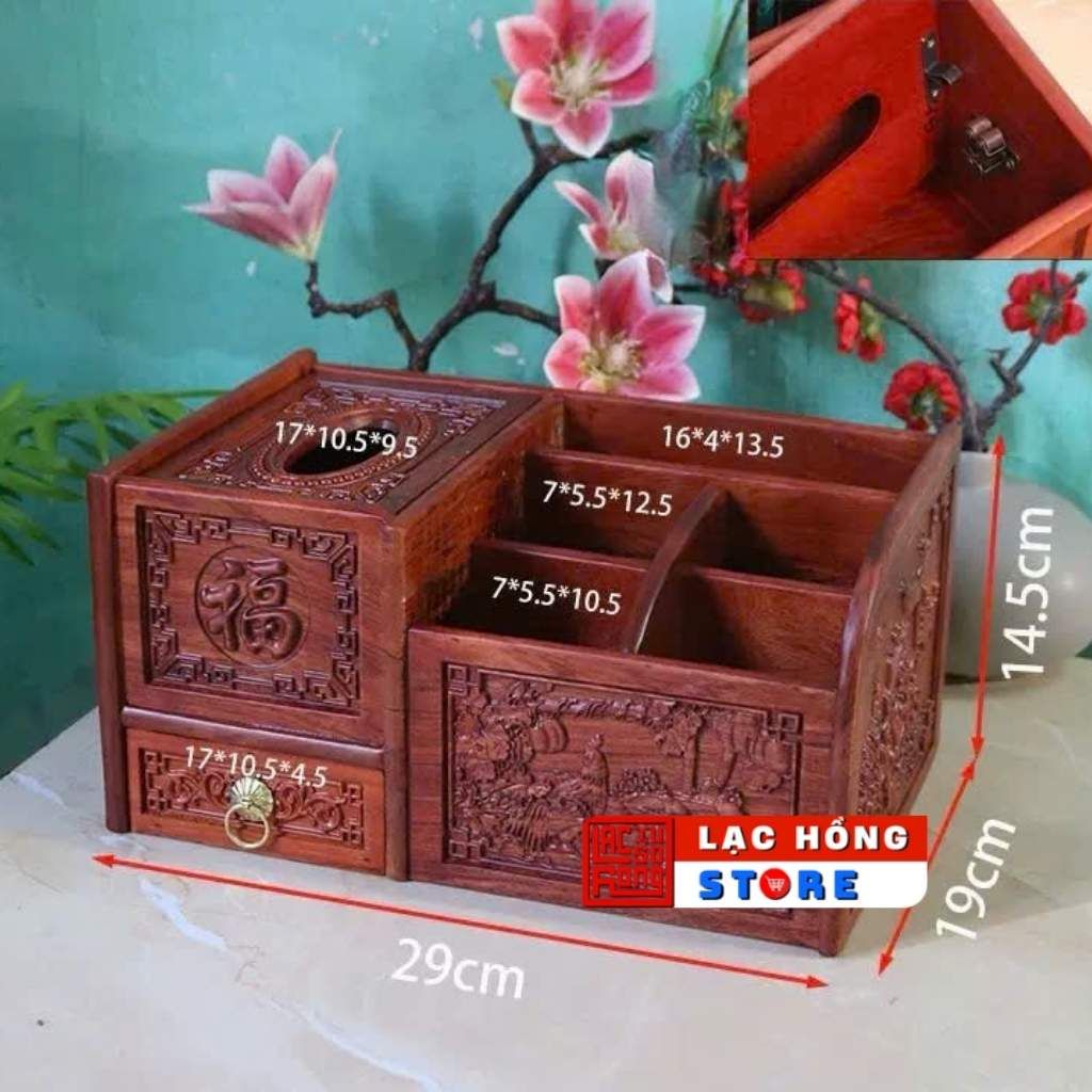 Gia công tỉ mỉ, bền bỉ: Sản phẩm được chế tác thủ công, từng chi tiết đều được chăm chút kỹ lưỡng, từ các đường viền bo mềm mại, kết cấu chắc chắn cho đến bề mặt nhẵn bóng. Độ bền vượt trội của gỗ hương đảm bảo chiếc hộp sẽ là vật phẩm đồng hành cùng bạn qua nhiều năm tháng.