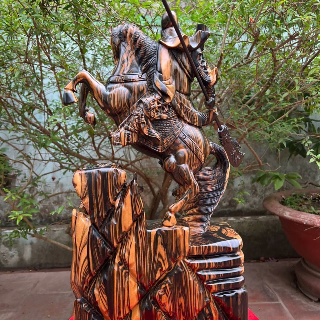 Quan công cưỡi ngựa gỗ mun hoa liền khối LHWOVN-9066
