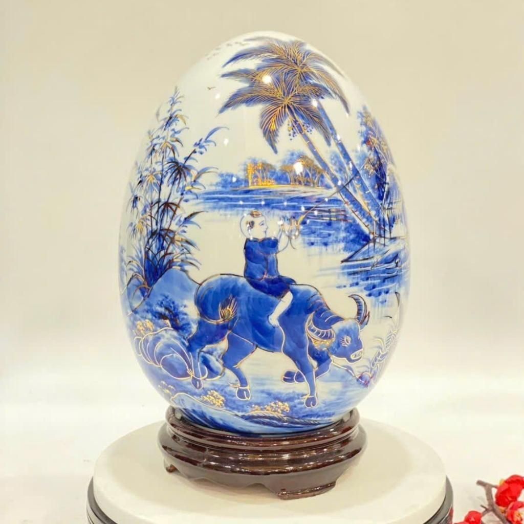 Trứng Tài Lộc Mục đồng cưỡi trâu vẽ vàng 24K LHCEVN-9129